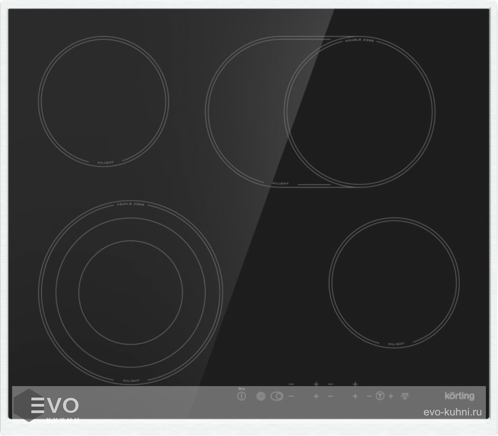 Электрическая HiLight варочная панель Korting HK 63052 X — выполнена из черной стеклокерамики с рамкой из нержавеющей стали. Сенсорная панель управления включается простым нажатием, выбор интенсивности нагрева производится по 9 ступеням.