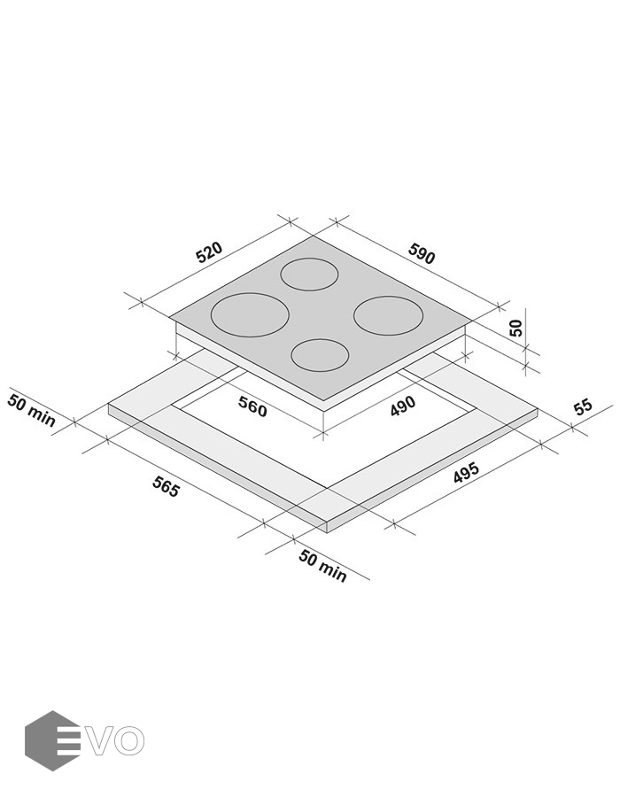 - Лицевая панель, мм (ВхШхГ), мм: 4х590х520