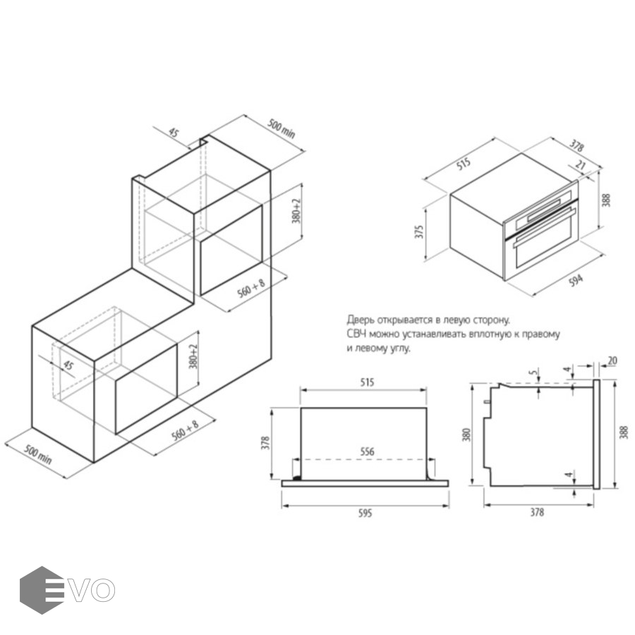 - Ниша для встраивания (ВхШхГ), мм: 30 minх565х495