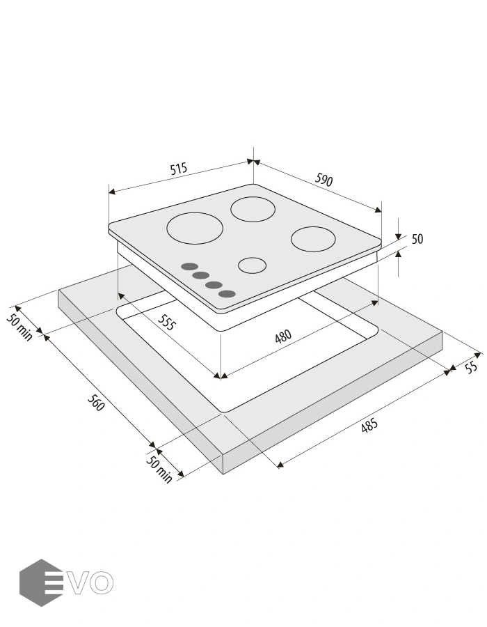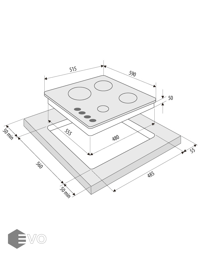 - Встраиваемая часть (ВхШхГ), мм: 50х555х480