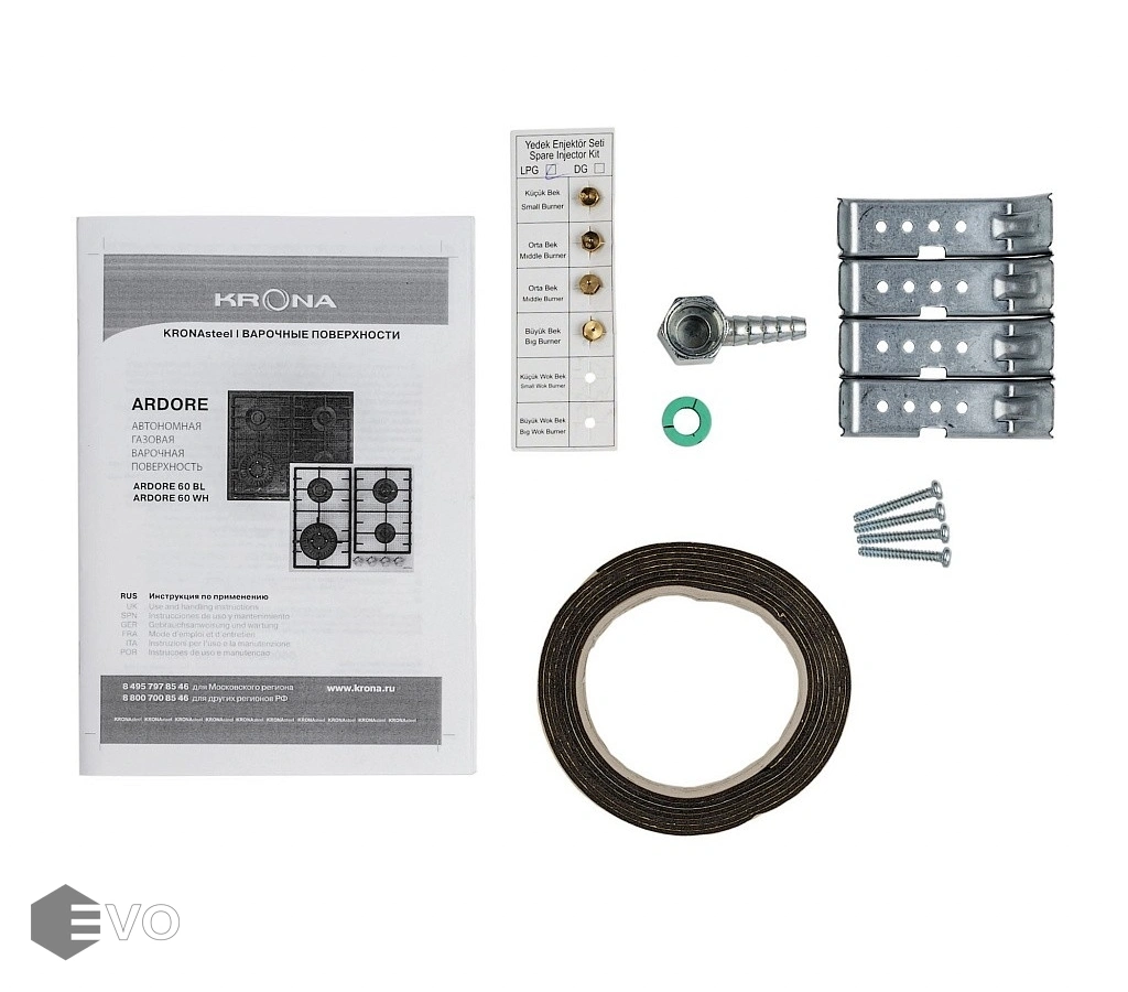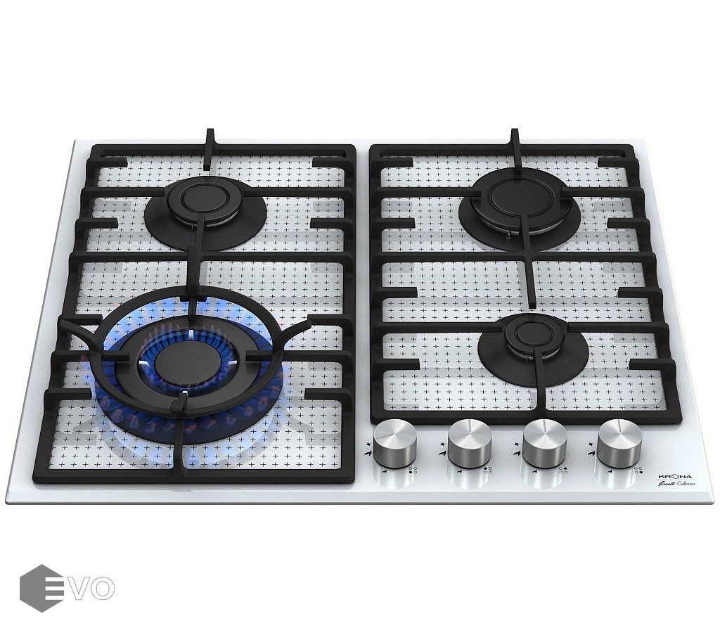 Газовая варочная поверхность KRONA ARDORE 60 WH - модель представлена в черном и белом цветах шириной встраивания 60 см. Варочная поверхность изготовлена из термостойкого стекла толщиной 8 мм с двумя чугунными устойчивыми решетками. В модели предусмотрена экспресс-конфорка с тройным пламенем и адаптер для посуды со сферическим дном, жиклеры для сжиженного газа, адаптер для WOK–посуды.