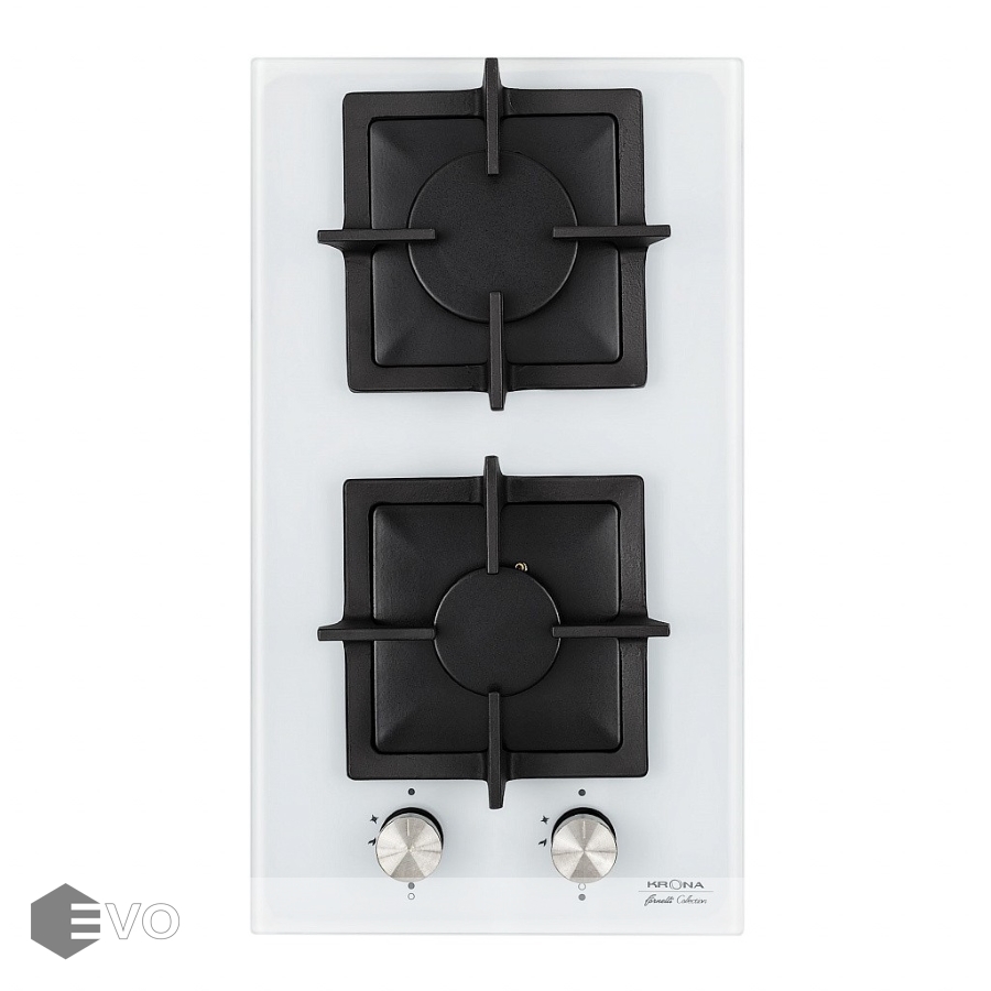 Газовая варочная поверхность KRONA CALORE 30 WH - модель шириной 30 см идеально подойдет для небольших кухонь. Варочная поверхность выполнена из толстого закаленного стекла толщиной 8 мм, переключатели из негорючего полимера, что гарантирует безопасность эксплуатации. В модели предусмотрена функция газ-контроля, которая остановит подачу газа в случае, если пламя погаснет. Поток газа к конфоркам (мощность конфорок) регулируется ручками управления газовыми конфорками, которые, в свою очередь, управляют кранами.
