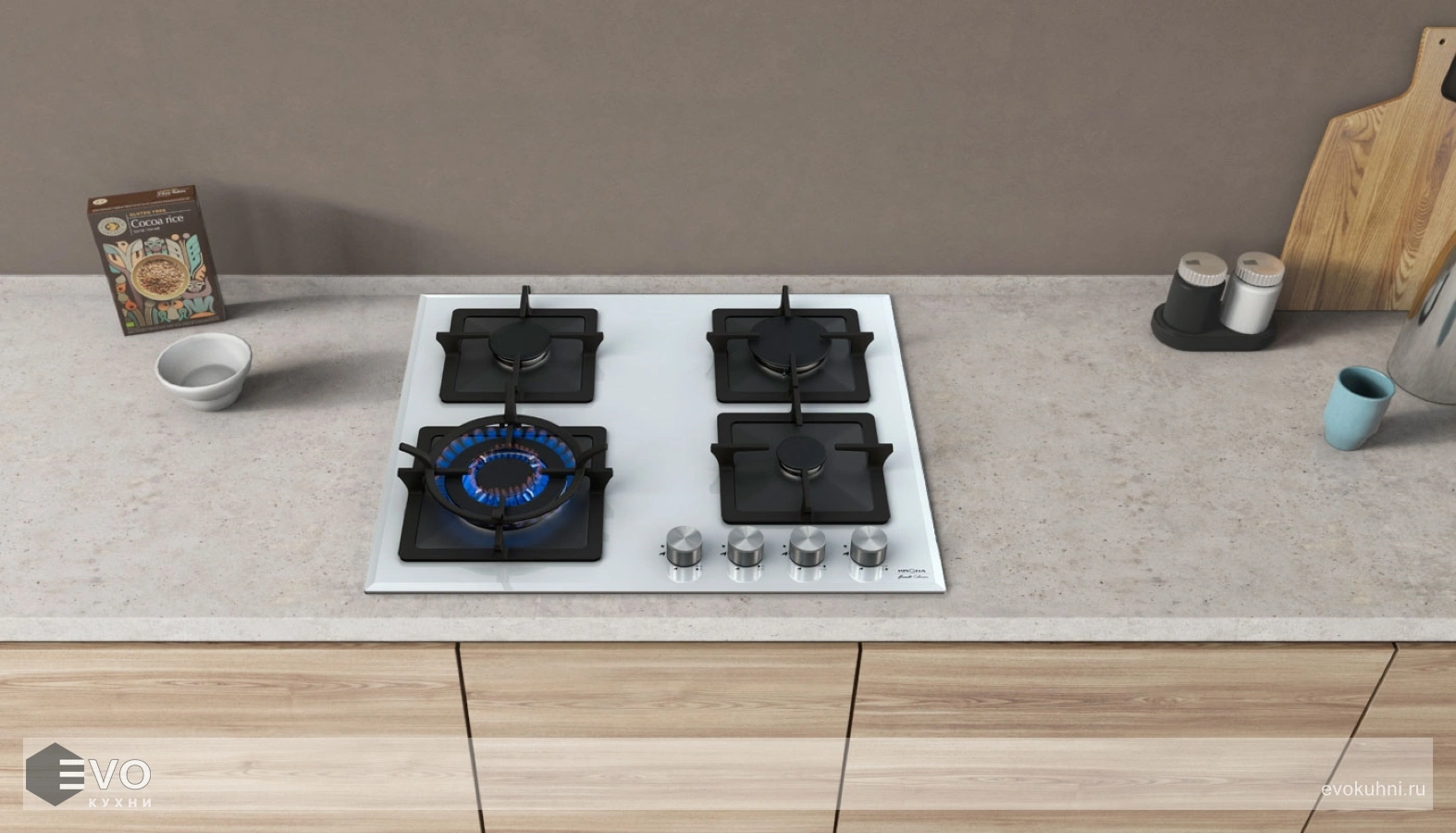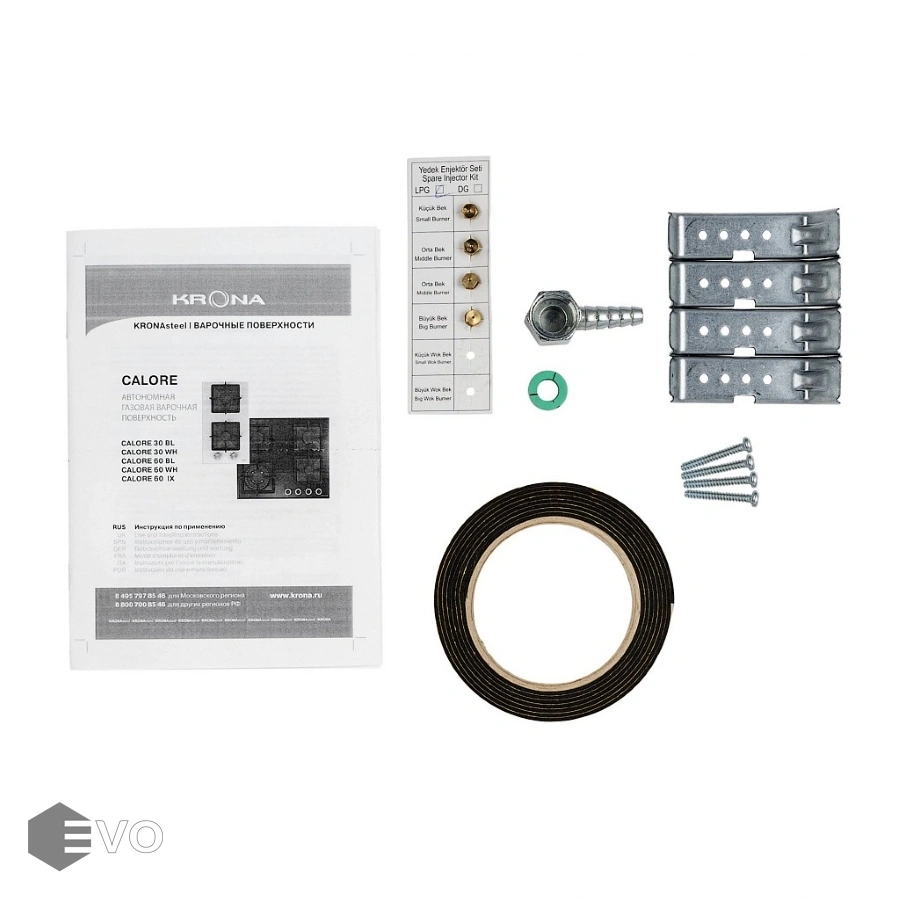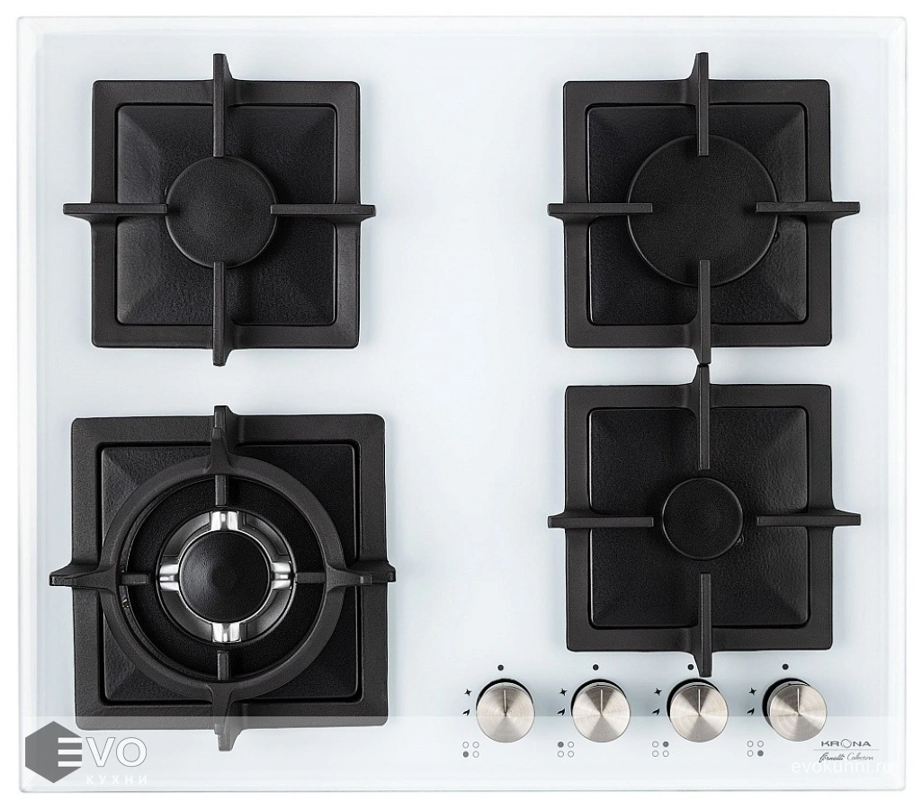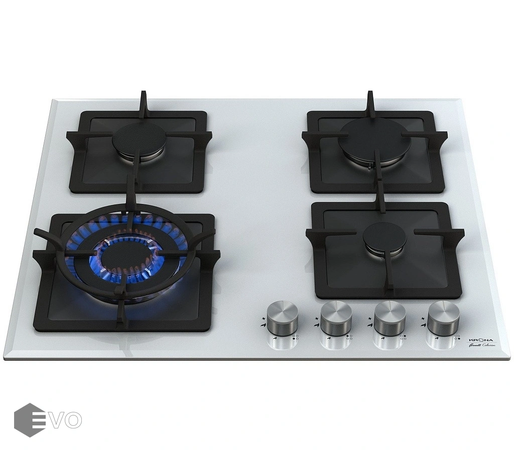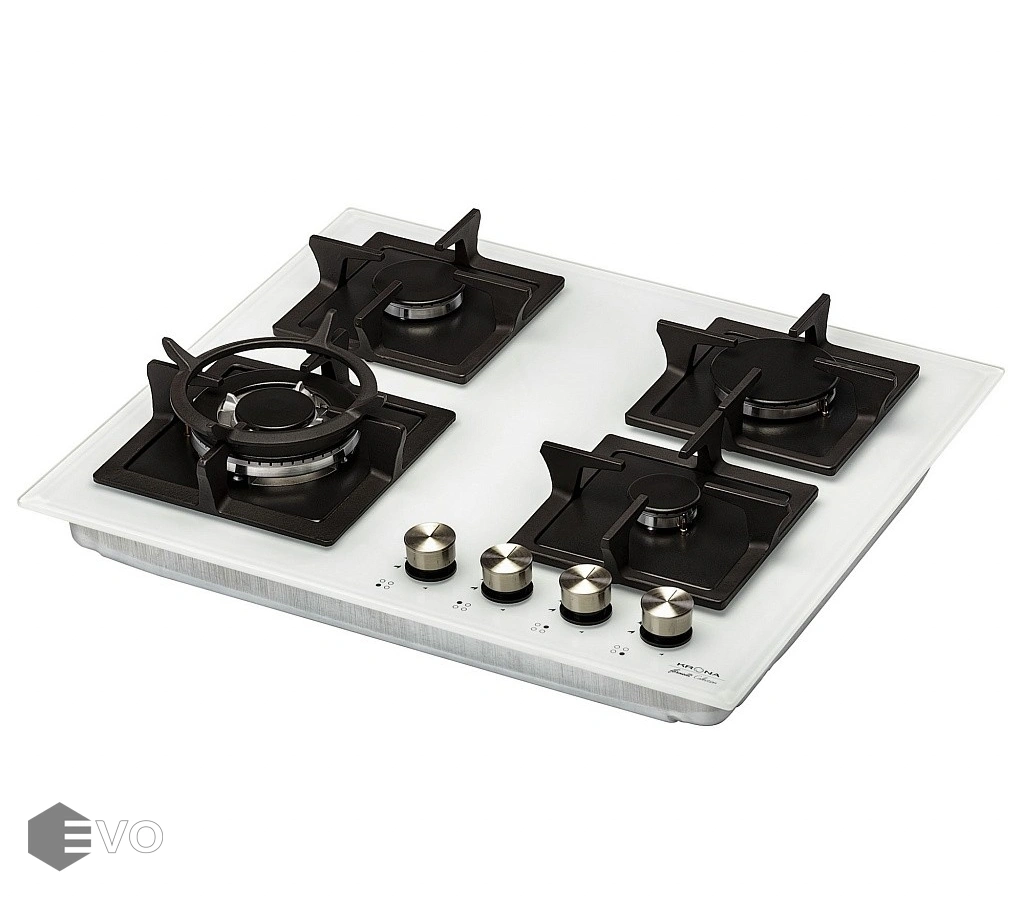Газовая варочная поверхность KRONA CALORE 60 WH – варочная поверхность выполнена из толстого закаленного стекла толщиной 8 мм, что гарантирует безопасность эксплуатации. Также в модели предусмотрена функция газ-контроля, которая остановит подачу газа, в случае если пламя погаснет, автоматический электроподжиг. Адаптер для WOK-посуды в комплектации. Поток газа к конфоркам (мощность конфорок) регулируется ручками управления газовыми конфорками, которые, в свою очередь, управляют кранам.