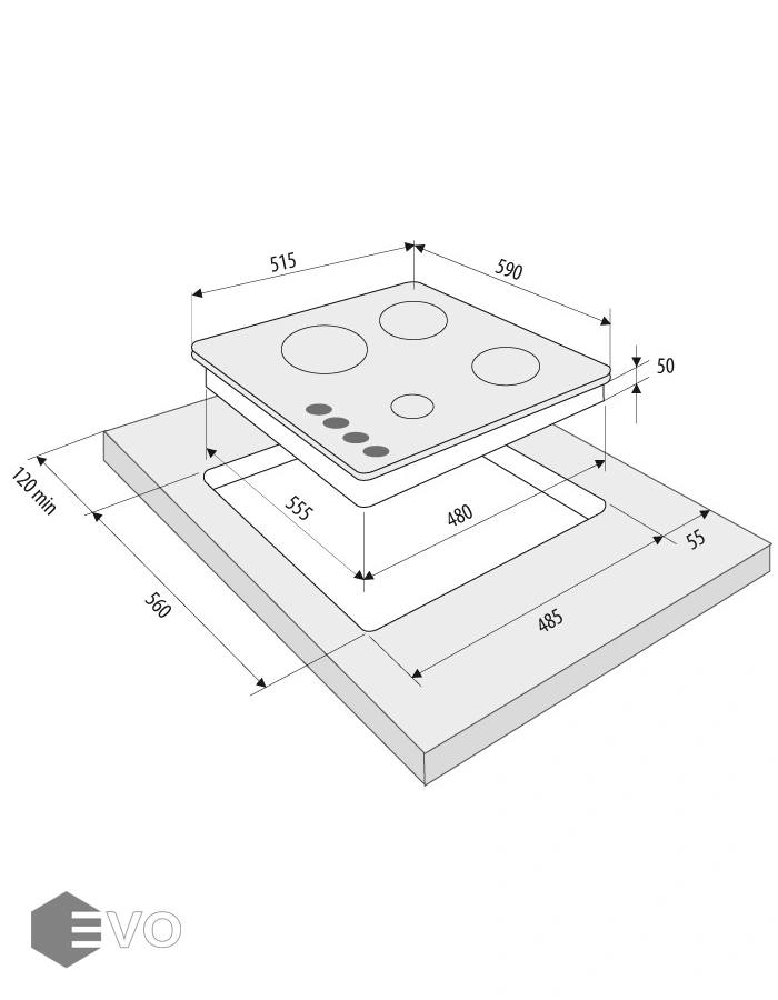 • Встраиваемая часть (ВхШхГ), мм: 50х555х480