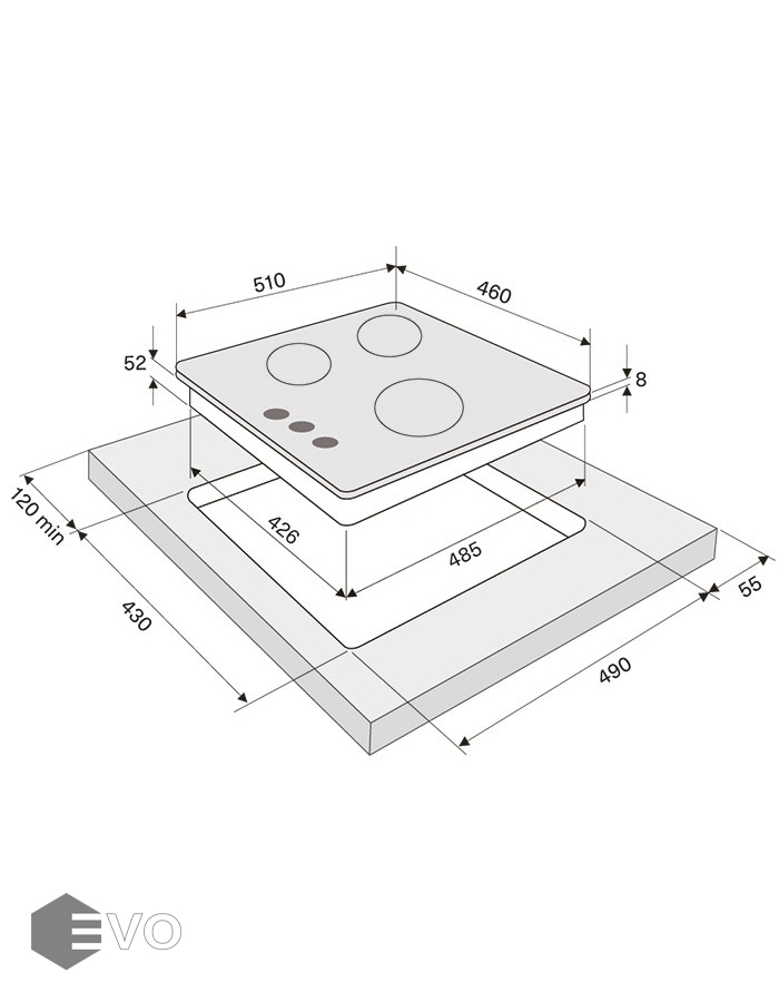 - Лицевая панель, мм (ВхШхГ), мм: 8х460х510