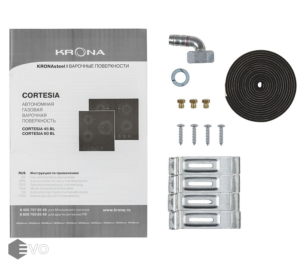 Газовая варочная поверхность KRONA CORTESIA 30 BL - варочная поверхность выполнена из черного закаленного стекла толщиной 8 мм. Модель оснащена экспресс-конфоркой с "Тройным пламенем", которая отлично подойдет для приготовления в посуде большого объема, а также приготовления стир-фрай или обжаривания мяса. Для вашего удобства и безопасности в модели предусмотрены автоматический электроподжиг и функция "Газ-контроль".