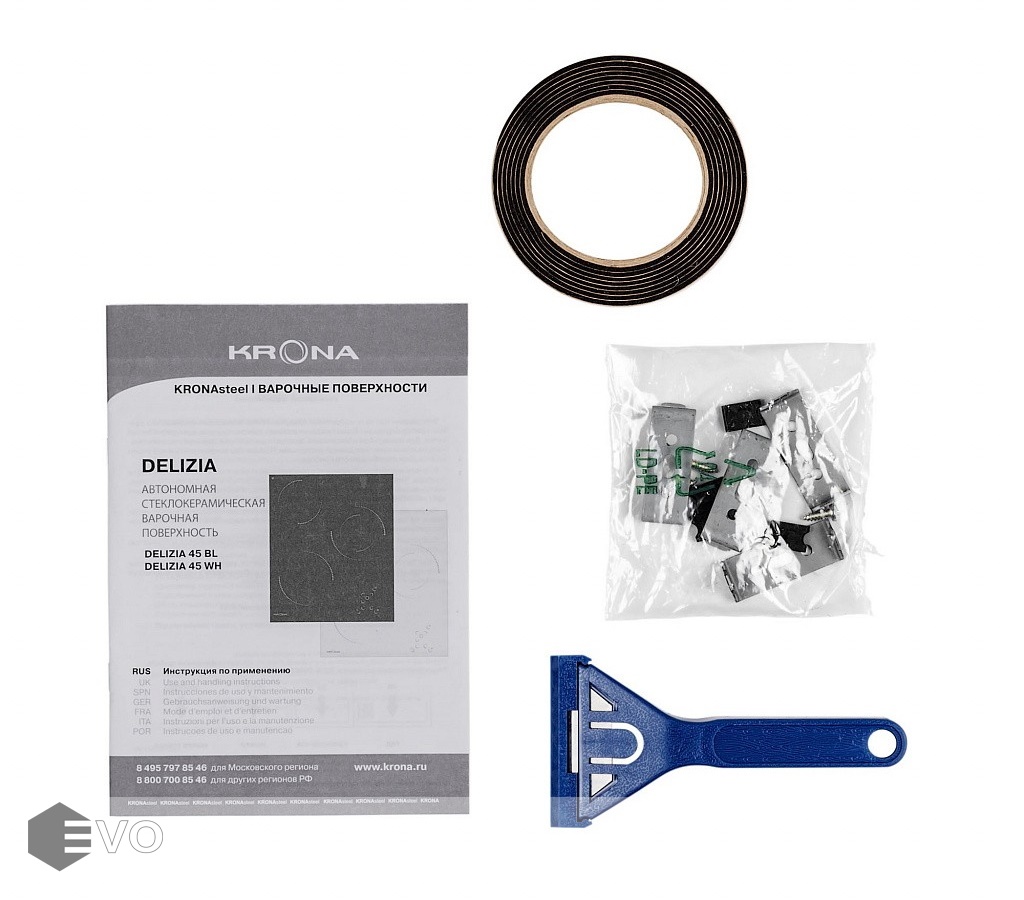 Электрическая варочная поверхность KRONA DELIZIA 45 BL – стеклокерамическая варочная поверхность шириной встраивания 45 см представлена в черном цвете. Дизайн модели выполнен в современном стиле и удачно впишется в кухни модерн или хай-тек. В варочной поверхности DELIZIA предусмотрены функции: блокировка панели управления, таймер автоотключения, двухконтурная зона расширения, защита от перелива и перегрева, а для удобства пользователя в комплекте идет скребок для очистки.
