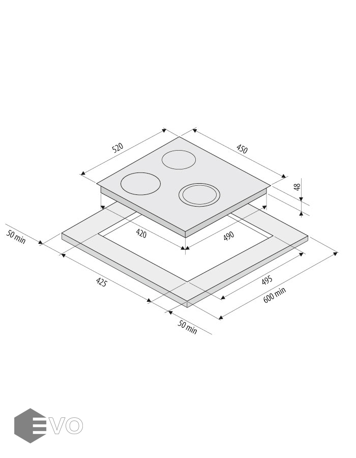 - Встраиваемая часть (ВхШхГ), мм: 48х420х490