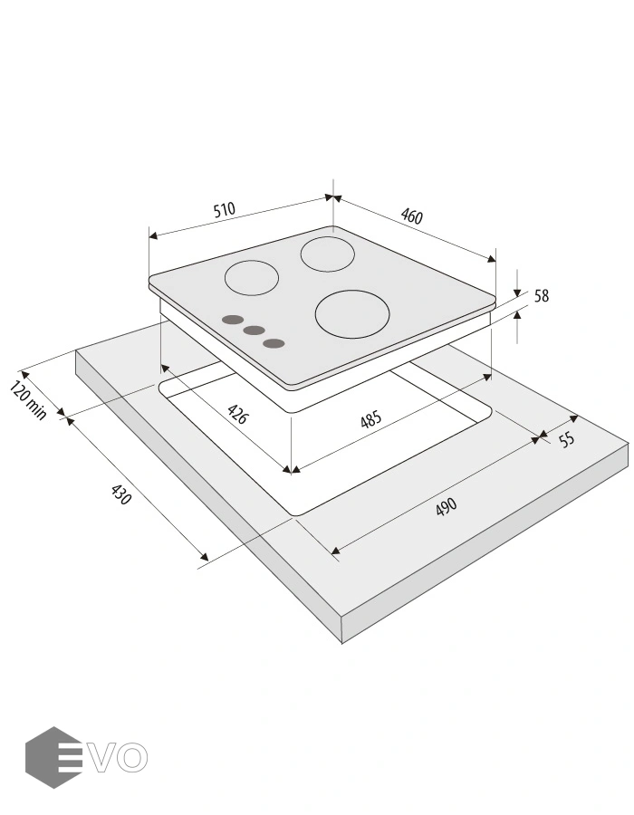 - Ниша для встраивания (ВхШхГ), мм: 35 minх490х430