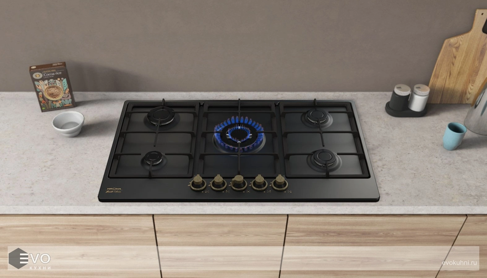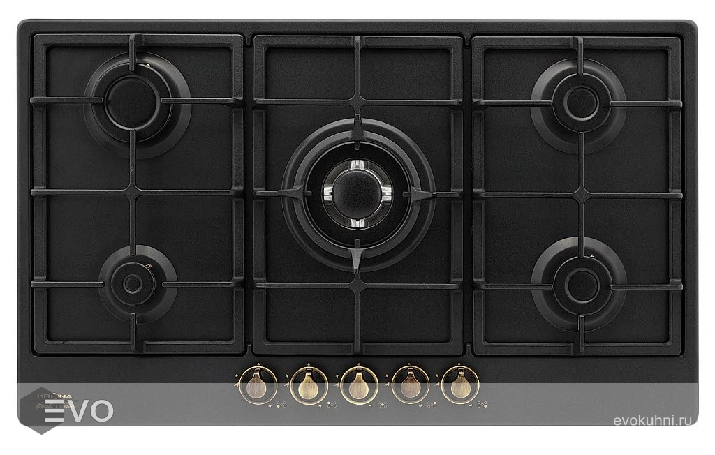 Газовая варочная поверхность KRONA NOVANTA 90 AN - газовая варочная поверхность шириной 90 см отлично подойдет для больших семей. В модели предусмотрены автоматический электроподжиг, экспресс-конфорка с тройным пламенем. В комплектации адаптер для посуды со сферическим дном, жиклеры для сжиженного газа. Поток газа к конфоркам (мощность конфорок) регулируется ручками управления газовыми конфорками, которые, в свою очередь, управляют кранами.