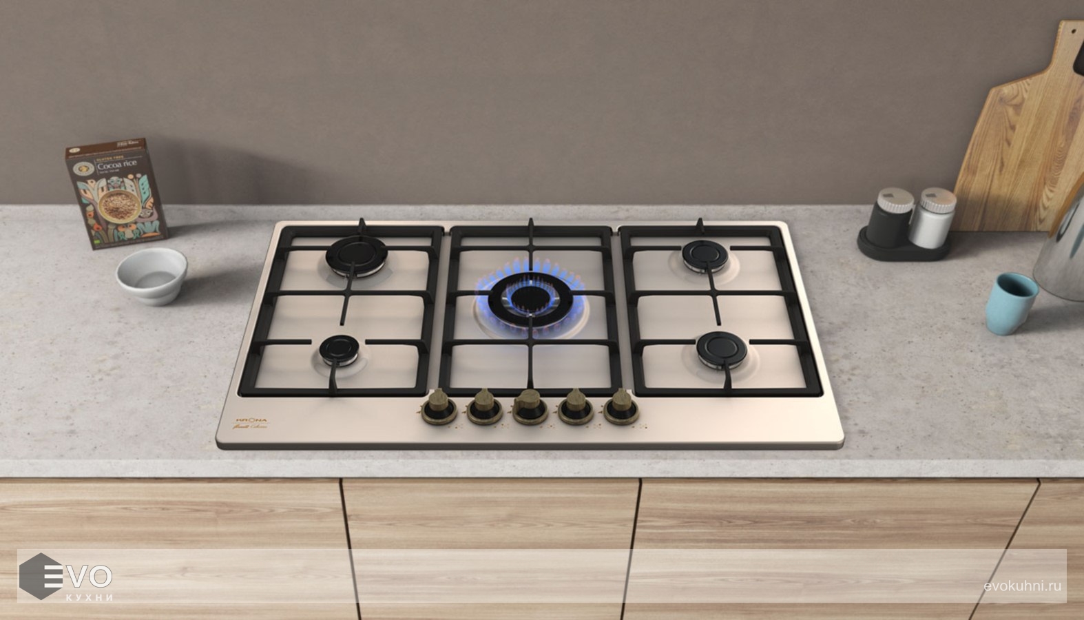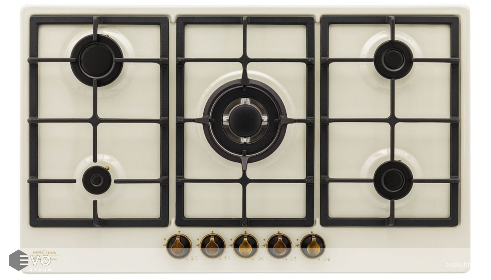 Газовая варочная поверхность KRONA NOVANTA 90 IV - газовая варочная поверхность шириной 90 см отлично подойдет для больших семей. В модели предусмотрены автоматический электроподжиг, экспресс-конфорка с тройным пламенем. В комплектации адаптер для посуды со сферическим дном, жиклеры для сжиженного газа. Поток газа к конфоркам (мощность конфорок) регулируется ручками управления газовыми конфорками, которые, в свою очередь, управляют кранами.