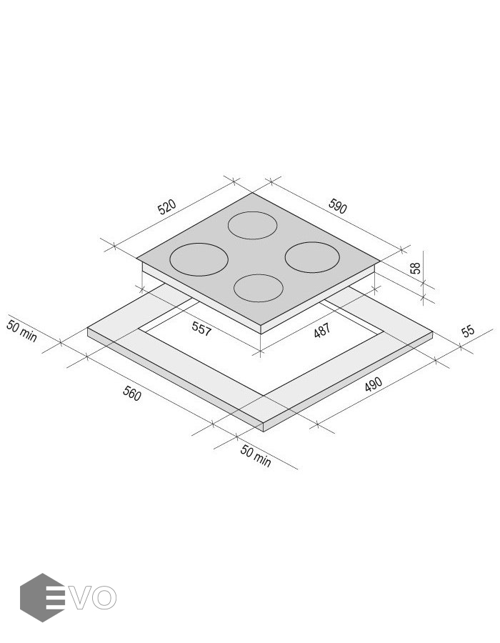 - Ниша для встраивания (ВхШхГ), мм: 35 minх560х490