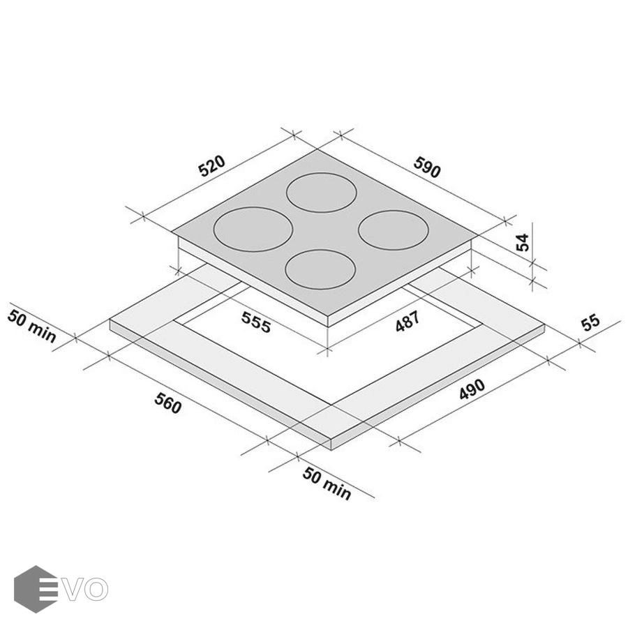 | Размеры встраивания (ВхШхГ), мм: | 35х560х490 |