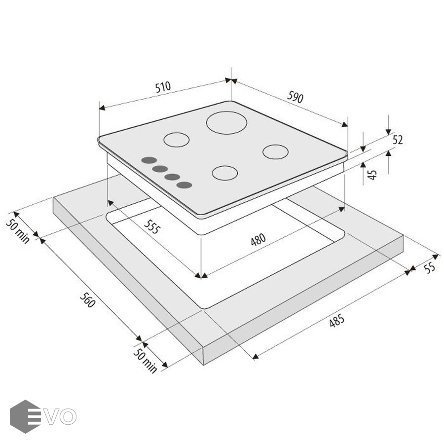 Размеры встраивания (ВхШхГ), мм: | 30х560х480 |