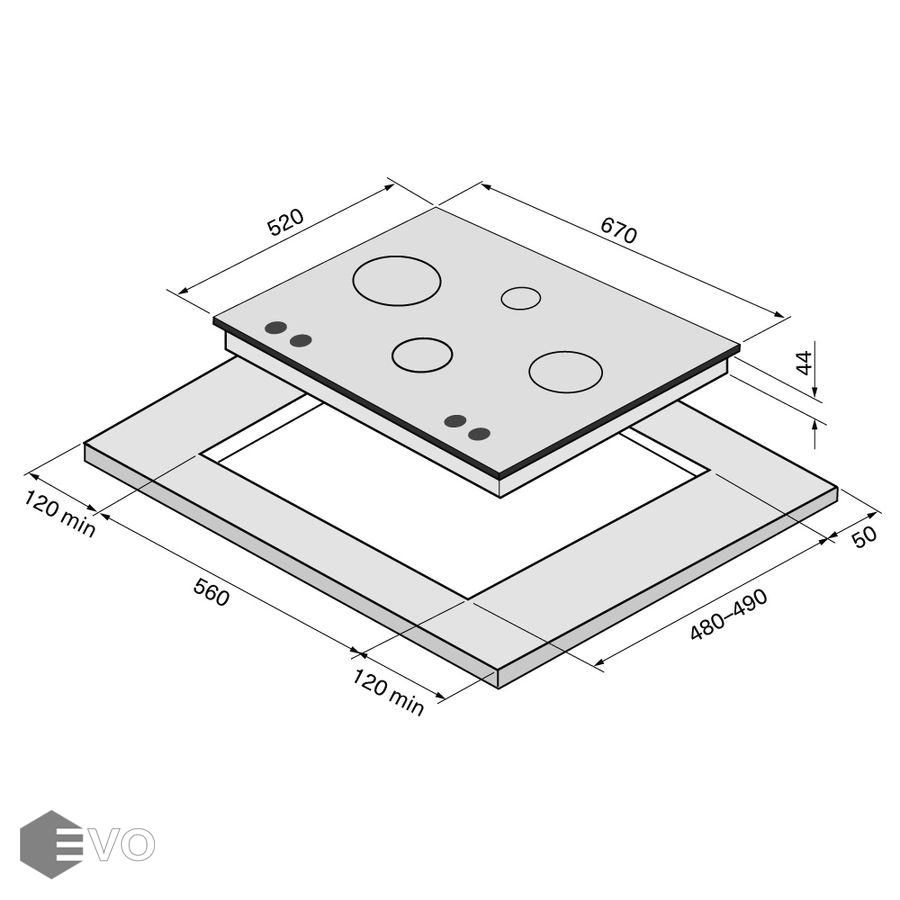 Размеры встраивания (ВхШхГ), мм: 30х560х480-490
