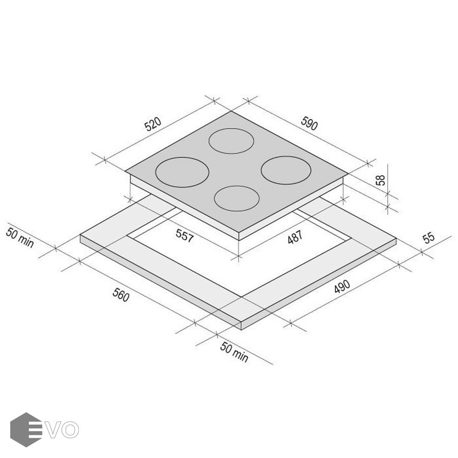 Размеры встраивания (ВхШхГ), мм: 35х560х490