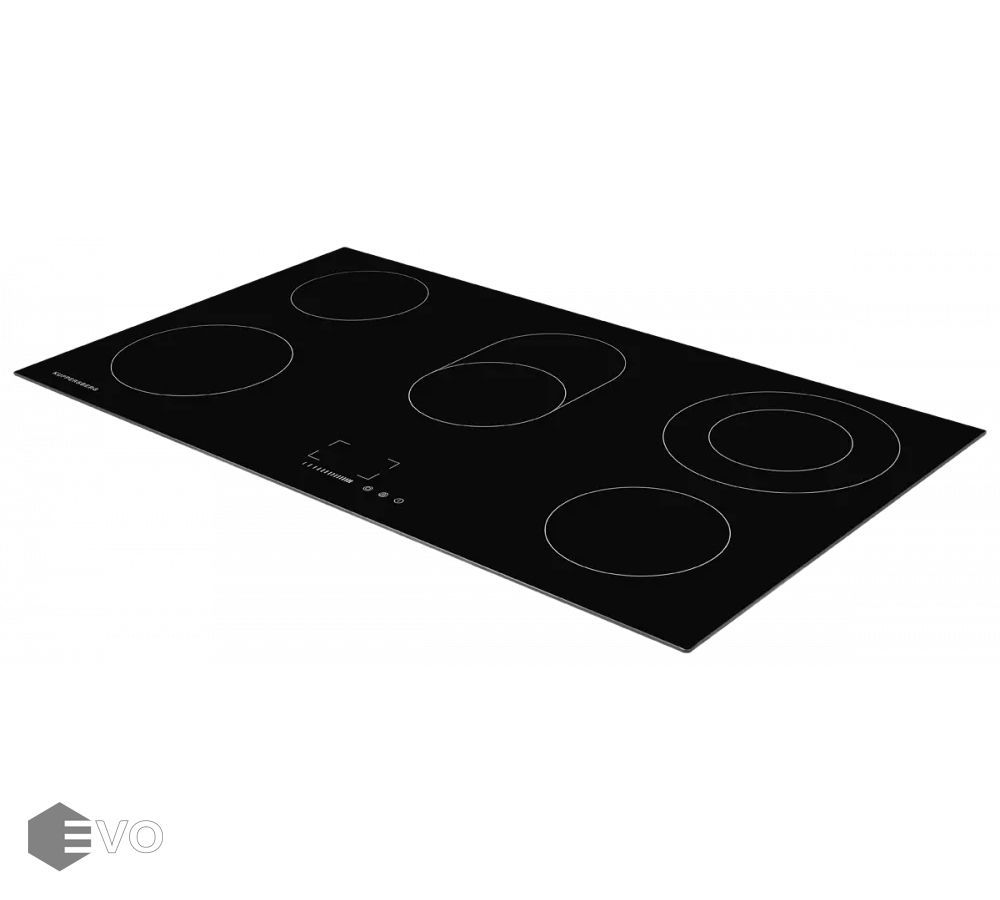 Электрическая независимая варочная поверхность стеклокерамическая, ширина 90 см, 5 зон ускоренного нагрева HI-Light, 2 зоны с двойным расширением, сенсорное управление, 6 цифровых дисплея, 9 уровней мощности, таймер, блокировка панели управления, индикаторы остаточного тепла, защита от перегрева, слайдер, цвет: чёрный.