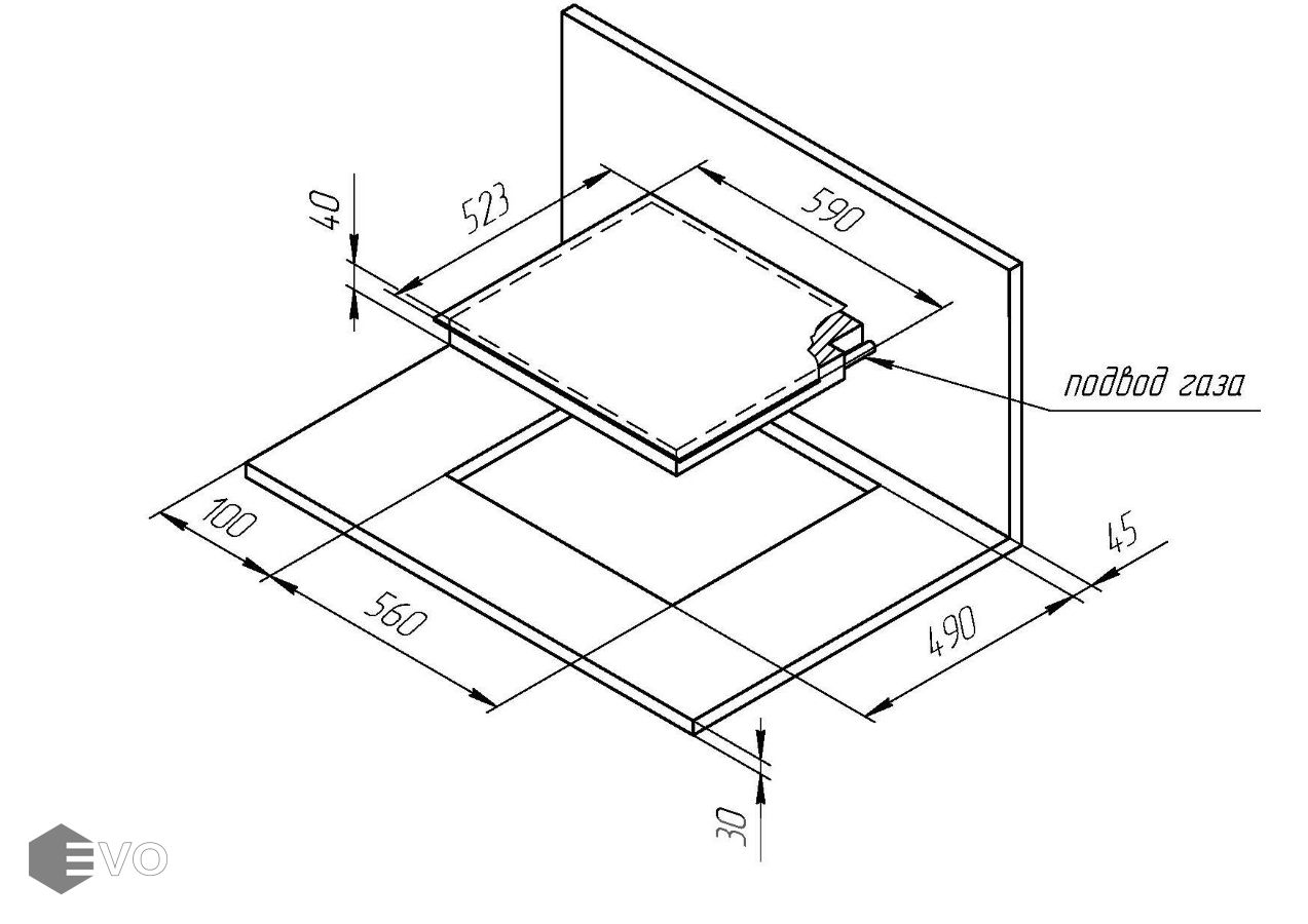 - Размеры ниши для встраивания (ШхГ): 560×490