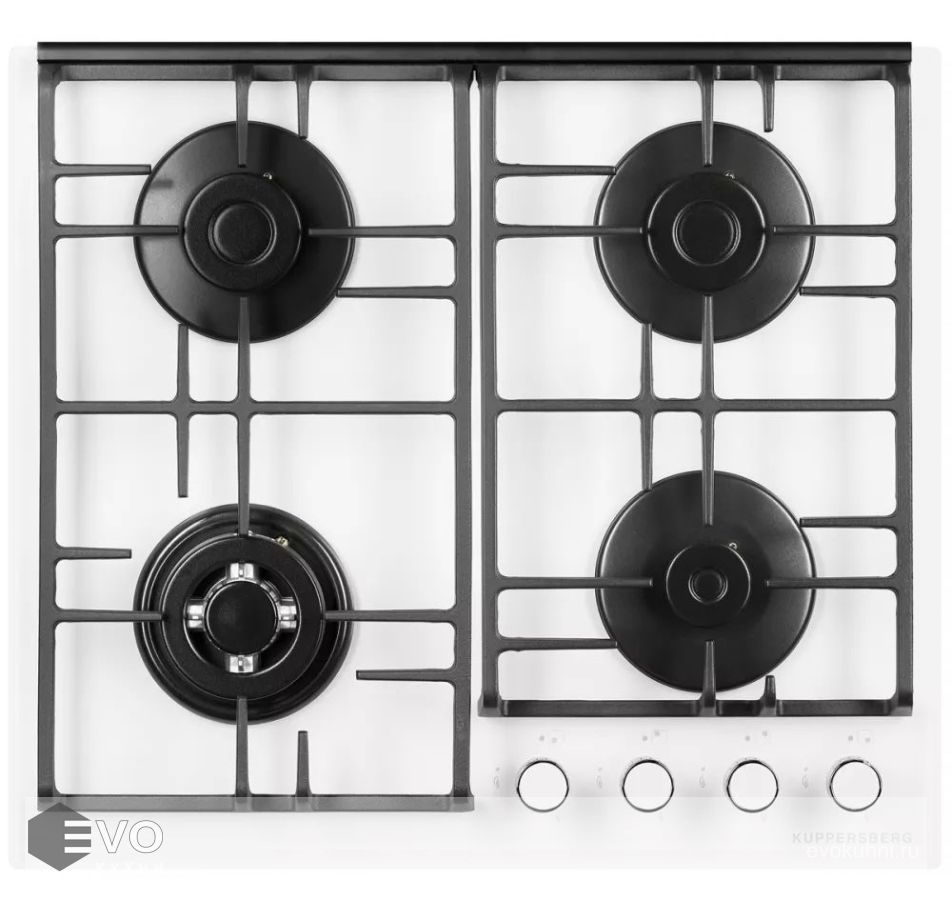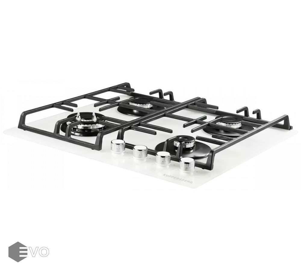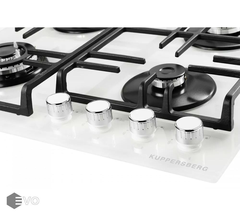 Газовая варочная поверхность, закаленное стекло, ширина 60 см, 4 газовые конфорки, WOK конфорка(2,5 кВт), автоподжиг, газ-контроль, чугунные решетки, цвет белый. Варочная поверхность из закаленного стекла, имеет высокую прочность и срок службы, также гарантирует легкую очистку от грязи и продуктов кипения. Внешний вид закаленного стекла подчеркнет столешницу из любых материалов и идеально впишется в вашу кухню. Решетка изготовлена из чугуна с оригинальным дизайном и практичной формой. Фиксацию решетки на варочной панели обеспечивает ребро жесткости, за счет специальных креплений.