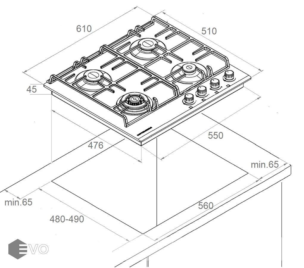 - Размеры ниши для встраивания (ШхГ): 555×475