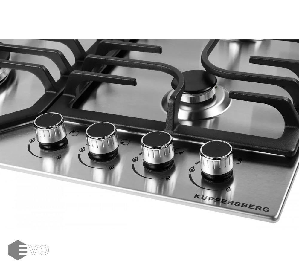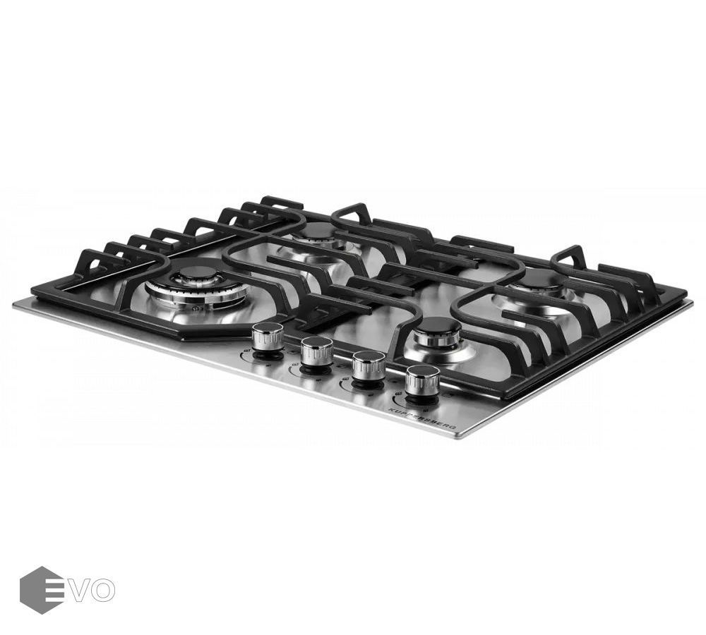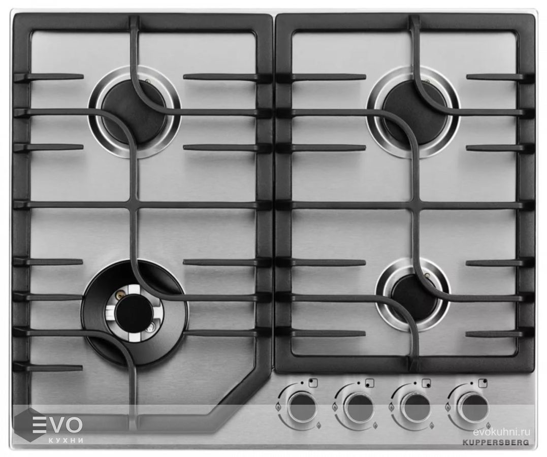 Газовая варочная поверхность металл, ширина 60 см, 4 газовые конфорки, WOK конфорка(3,8 кВт), автоподжиг, газ-контроль, чугунные решетки, цвет нержавеющая сталь. Удобное расположение WoK конфорки повышенной мощности облегчит приготовление больших и тяжелых блюд, так как не нужно тянуться за ними на другой конец варочной поверхности. Решетка изготовлена из чугуна с оригинальным дизайном и практичной формой. Фиксацию решетки на варочной панели обеспечивает ребро жесткости, за счет специальных креплений.