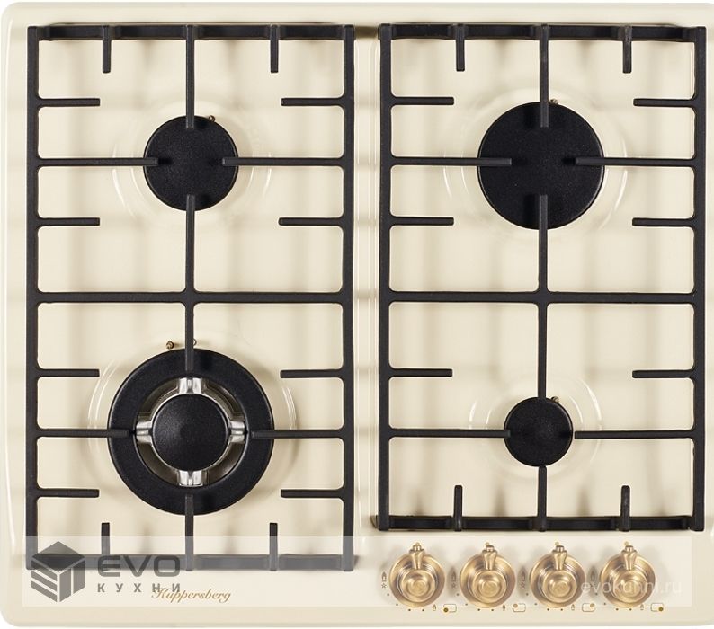 Газовая варочная поверхность металл, ширина 60 см, 4 газовые конфорки, 1 конфорка повышенной мощности, автоподжиг, газ-контроль, чугунные решетки, цвет бежевый/ручки цвета бронзы. Варочные поверхности покрытые эмалью имеют глубину цвета, а также приятные и гладкие на ощупь. Современные технологии эмали позволяют создать материал стойкий к нагреву и устойчивый к износу и по этим причинам эмалированные варочные поверхности, не только красивы, но и практичны в применении и уходе.