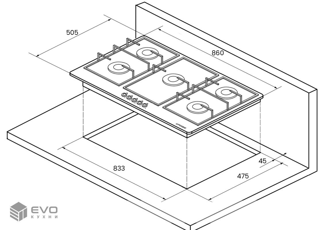 - Размеры ниши для встраивания (ШхГ): 840×480