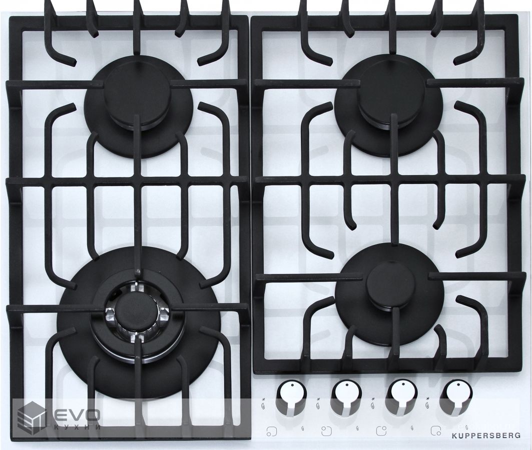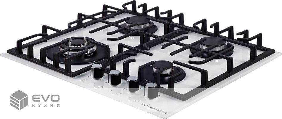 Газовая варочная поверхность, закаленное стекло, ширина 60 см, 4 газовые конфорки, 1 конфорка повышенной мощности, автоподжиг, газ-контроль, чугунные решетки, цвет белый/передний край скошенный. Варочная поверхность из закаленного стекла, имеет высокую прочность и срок службы, также гарантирует легкую очистку от грязи и продуктов кипения. Внешний вид закаленного стекла подчеркнет столешницу из любых материалов и идеально впишется в вашу кухню. Решетка изготовлена из чугуна с оригинальным дизайном и практичной формой. Фиксацию решетки на варочной панели обеспечивает ребро жесткости, за счет специальных креплений.