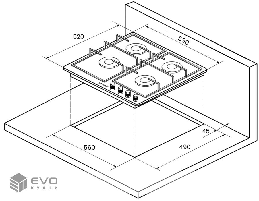 • Размеры ниши для встраивания (ШхГ): 565×495