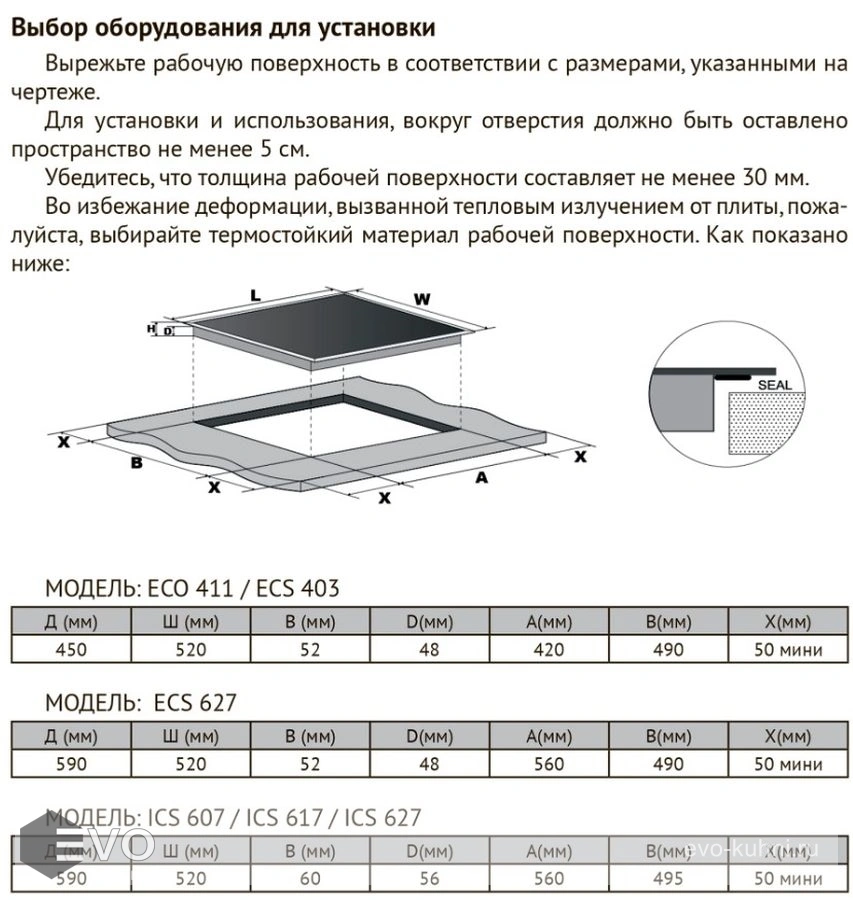 | Размеры встраивания (ВхШхГ), мм: | 50х420х490 |