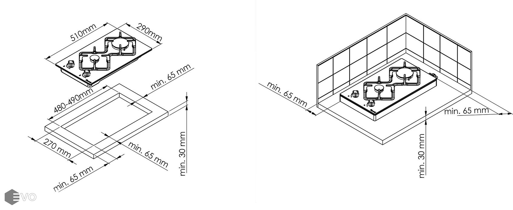 - Размер ниши для встраивания (ШхГ), мм: 270×490