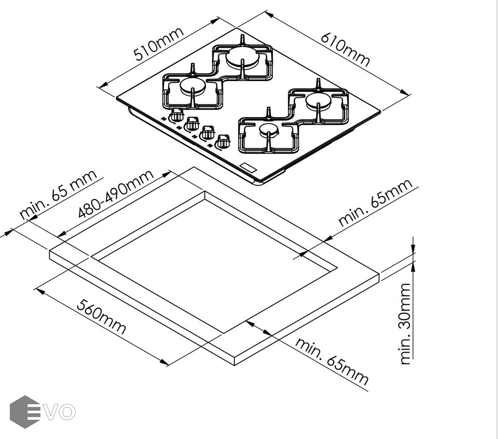Размеры встраивания (ВхШхГ), мм: | 65х560х490 |