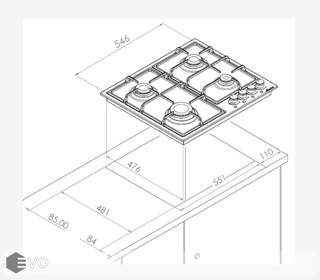 - Размер ниши для встраивания (ШхГ), мм: 551х476