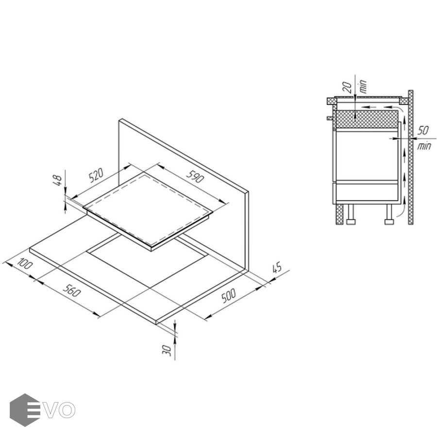 - Размер ниши для встраивания (ШхГ), мм: 560×500