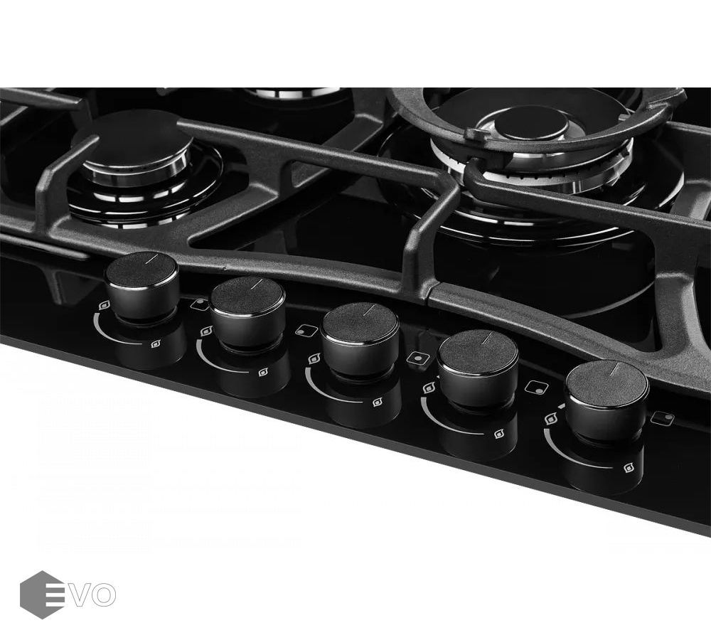 Газовая варочная поверхность, закаленное стекло, ширина 70 см, 5 газовых конфорок, WOK конфорка(3,8 кВт), автоподжиг, газ-контроль, чугунные решетки, цвет чёрный. Варочная поверхность из закаленного стекла, имеет высокую прочность и срок службы, также гарантирует легкую очистку от грязи и продуктов кипения. Внешний вид закаленного стекла подчеркнет столешницу из любых материалов и идеально впишется в вашу кухню. Решетка изготовлена из чугуна с оригинальным дизайном и практичной формой. Фиксацию решетки на варочной панели обеспечивает ребро жесткости, за счет специальных креплений.
