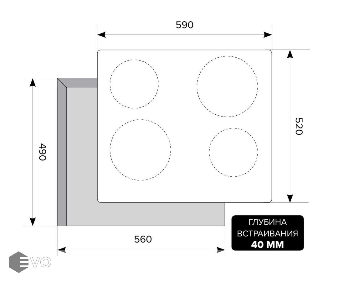 Толщина корпуса всего 40 мм, что значительно облегчает встраивание в тонкие столешницы. Наличие двух зон расширения разного диаметра позволяет использовать любую посуду. Утятницы, небольшие турки и даже сковороды гриль – идеально подойдут для создания настоящих кулинарных шедевров.