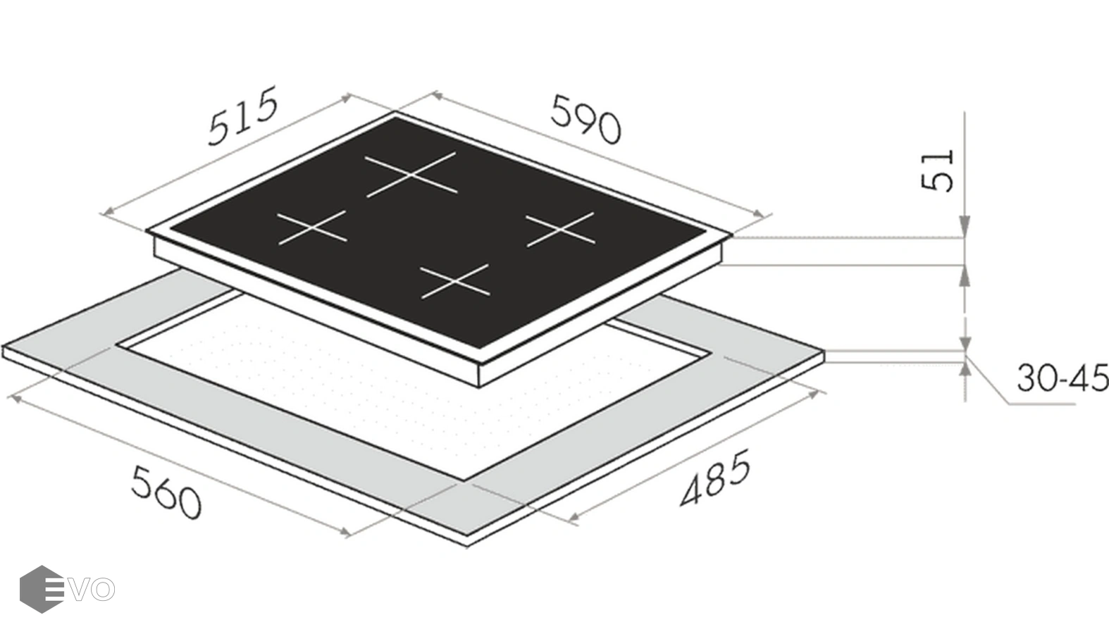 - Ниша для встраивания, мм: 560х485