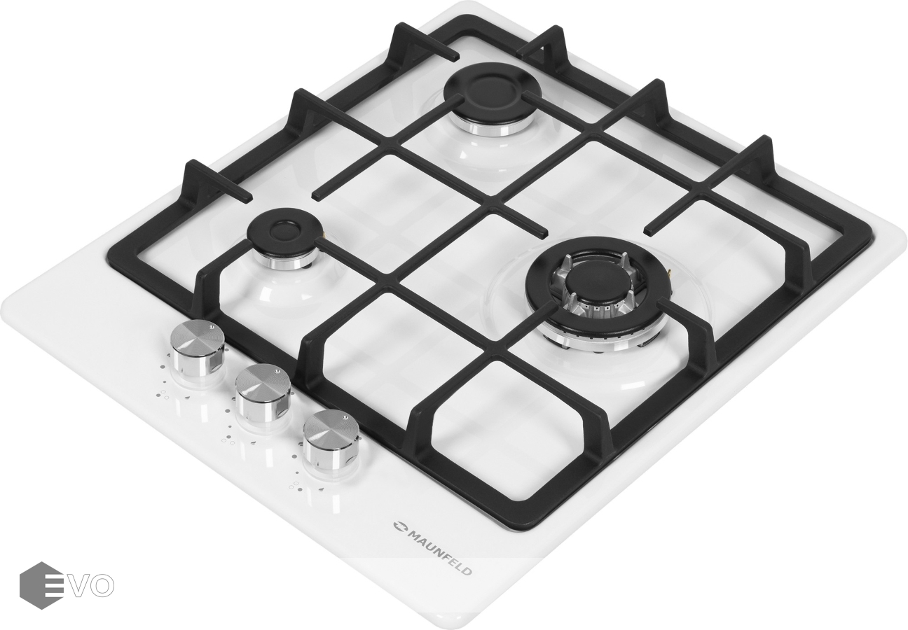 Газовая варочная поверхность MAUNFELD EGHE.43.33CW\G – компактная встраиваемая газовая варочная панель шириной 45 см. Работает от магистрального газа и газа в баллоне (тип G30), для этого достаточно поставить специальные жиклеры, которые есть в комплекте.