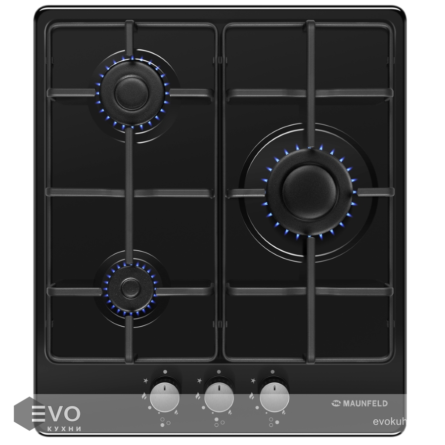 Газовая варочная поверхность MAUNFELD EGHE.43.3STS-EB – компактная встраиваемая газовая варочная панель шириной 45 см. Работает от магистрального газа и газа в баллоне (тип G30), для этого достаточно поставить специальные жиклеры, которые есть в комплекте. Панель выполнена из высококачественной нержавеющей стали с эмалевым. Три стандартные конфорки разного диаметра мощностью 1000 Вт, 1700 Вт и 2600 Вт.