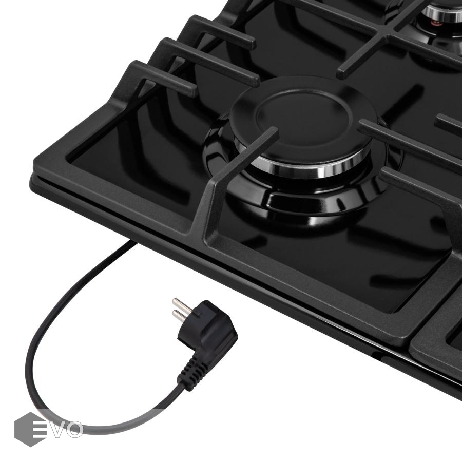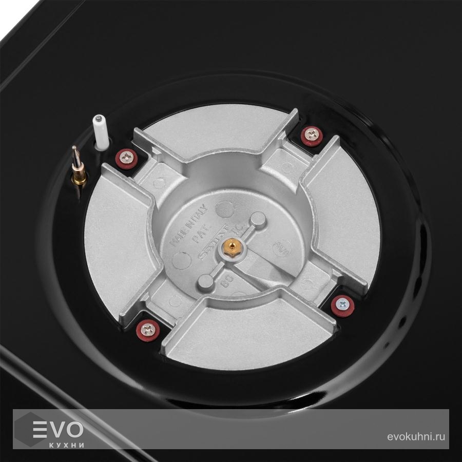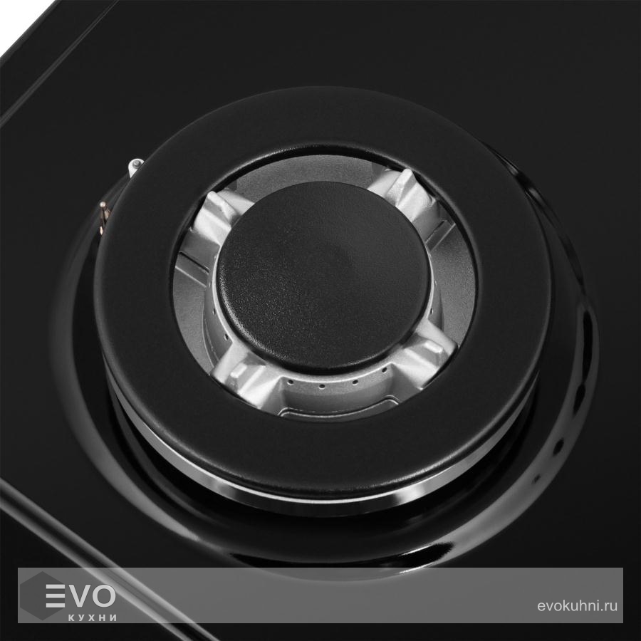 Панель выполнена нержавеющей стали с теплостойким покрытием из эмали черного цвета. В данной модели установлены высококачественные итальянские горелки SABAF. Три стандартные конфорки мощностью 1000 Вт, 1700 Вт, 1700 Вт и 1 свермощная WOK-конфорка с двойным пламенем мощностью 3800 Вт.