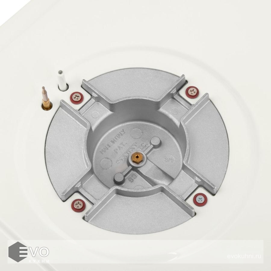 Панель выполнена нержавеющей стали с теплостойким покрытием из эмали бежевого цвета. В данной модели установлены высококачественные итальянские горелки SABAF. Три стандартные конфорки мощностью 1000 Вт, 1700 Вт, 1700 Вт и 1 свермощная WOK-конфорка с двойным пламенем мощностью 3800 Вт.