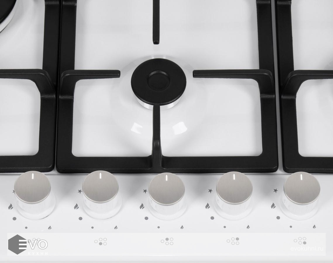 - Цвет поворотных переключателей конфорок: серебристо-белый
