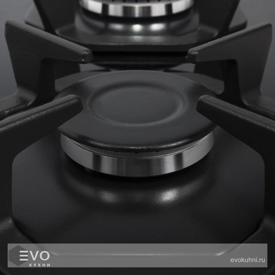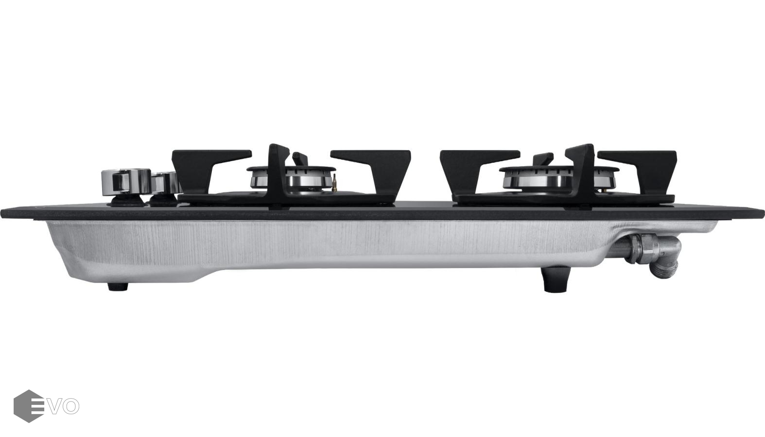 Панель выполнена из термостойкого стекла толщиной 8 мм и с фацетом  по всему периметру. В данной модели установлены высококачественные итальянские горелки SABAF. Две конфорки разного диаметра с мощностью 1700 Вт и 2600 Вт, укомплектованы восьмиугольными чугунными решетками. Регулирование подачи газа и электоподжиг конфорок происходит с помощью поворотных цельнометаллических регуляторов. Для простоты использования около каждой ручки нанесены информационные изображения: используемая конфорка, подача газа выключена, электроподжиг, максимальное пламя и минимальное пламя.
