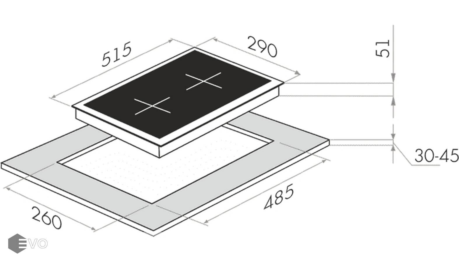- Глубина, мм: 515