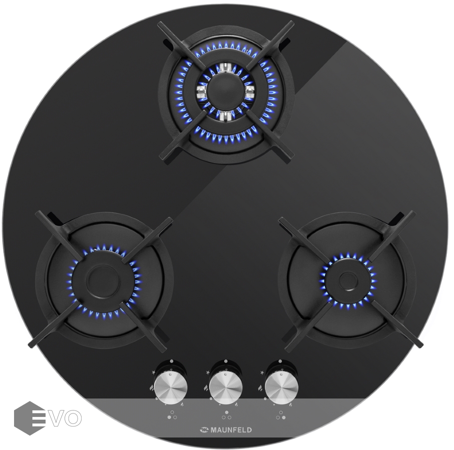 Газовая варочная поверхность MAUNFELD EGHG.43.23CB/G – круглая встраиваемая газовая варочная панель шириной 54 см идеальное решение для угловой столешницы. Может работать от магистрального газа и газа в баллоне (тип G30), для этого достаточно поставить специальные жиклеры, находящиеся в комплекте.