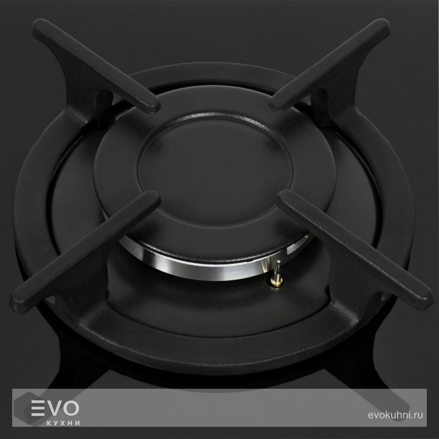 Панель выполнена из термостойкого стекла толщиной 8 мм. В данной модели установлены высококачественные итальянские горелки SABAF. Четыре стандартные конфорки мощностью 1000 Вт, 1700 Вт, 1700 Вт и 2600 Вт и укомплектованы круглыми чугунными решетками.