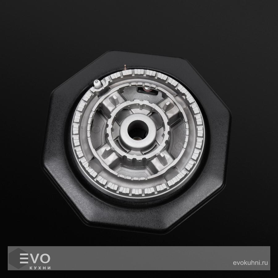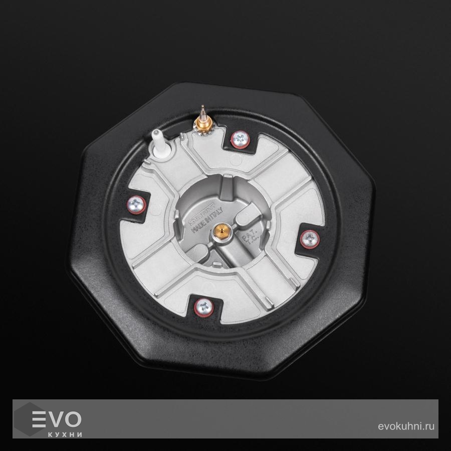 В данной модели установлены высококачественные итальянские горелки «Sabaf». Три стандартные конфорки мощностью 1000 Вт, 1700 Вт, 1700 Вт и одна мощная WOK-конфорка с двойным пламенем мощностью 3000 Вт.