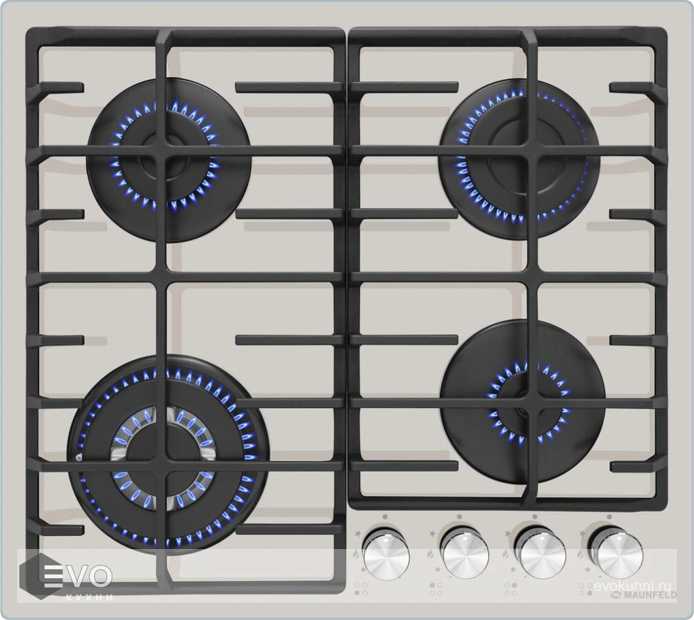 Газовая варочная поверхность MAUNFELD EGHG.64.63CBG/G – встраиваемая газовая варочная панель шириной 60 см работает от магистрального газа и газа в баллоне, для этого достаточно поставить специальные жиклеры.
