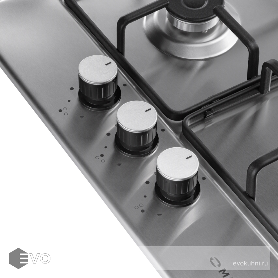 - Цвет поворотных переключателей конфорок: серебристый