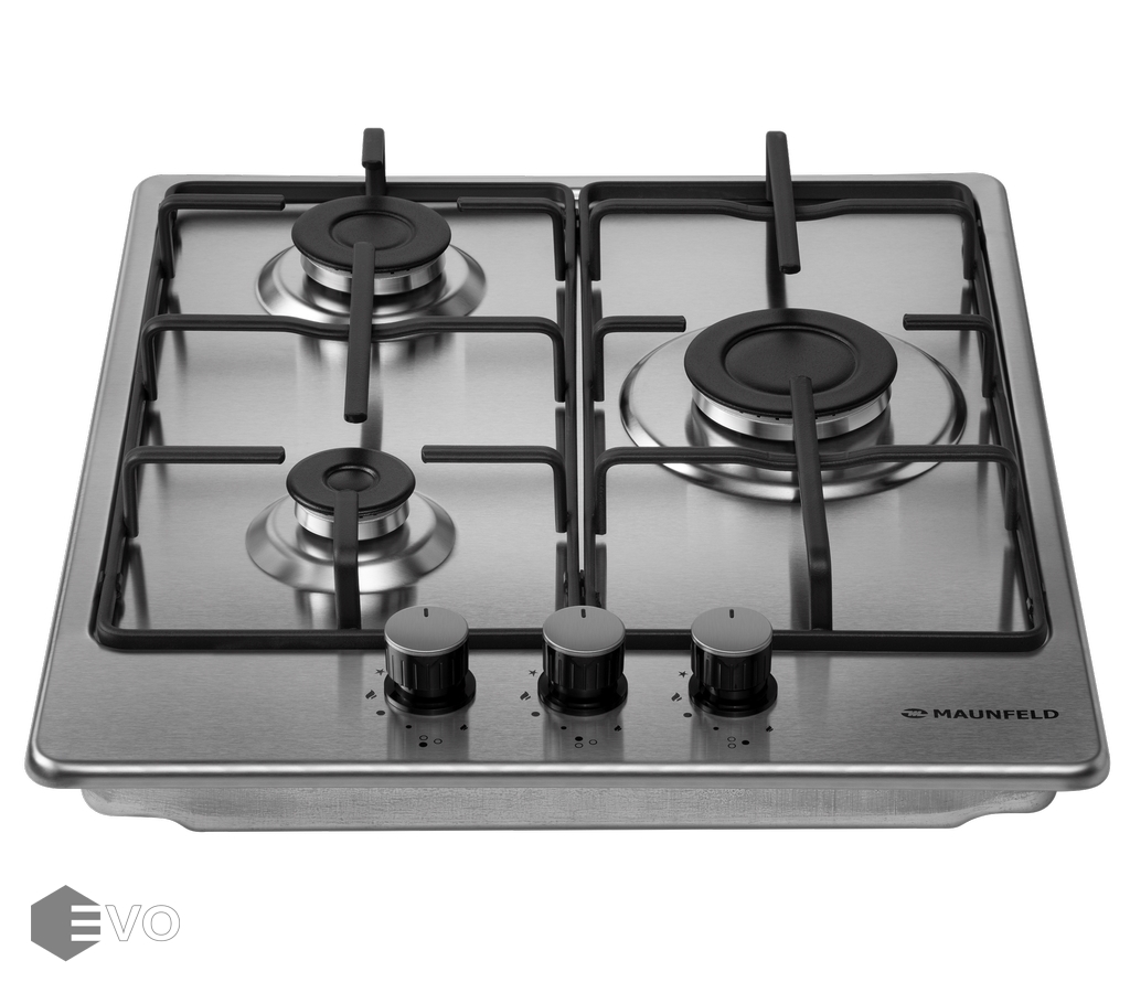 Газовая варочная поверхность MAUNFELD EGHS.43.3STS-ES/G – встраиваемая газовая варочная панель шириной 45 см может работать от магистрального газа и газа в баллоне (тип G30), для этого достаточно поставить специальные жиклеры, находящиеся в комплекте.